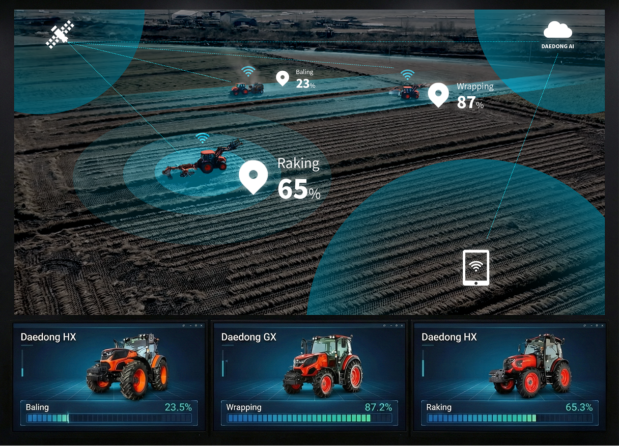 작업기, 경작지 선택 후 선회 방법(C턴, X턴) 선택만 하면 A-MOTION 자율작업을 시작할 수 있습니다.