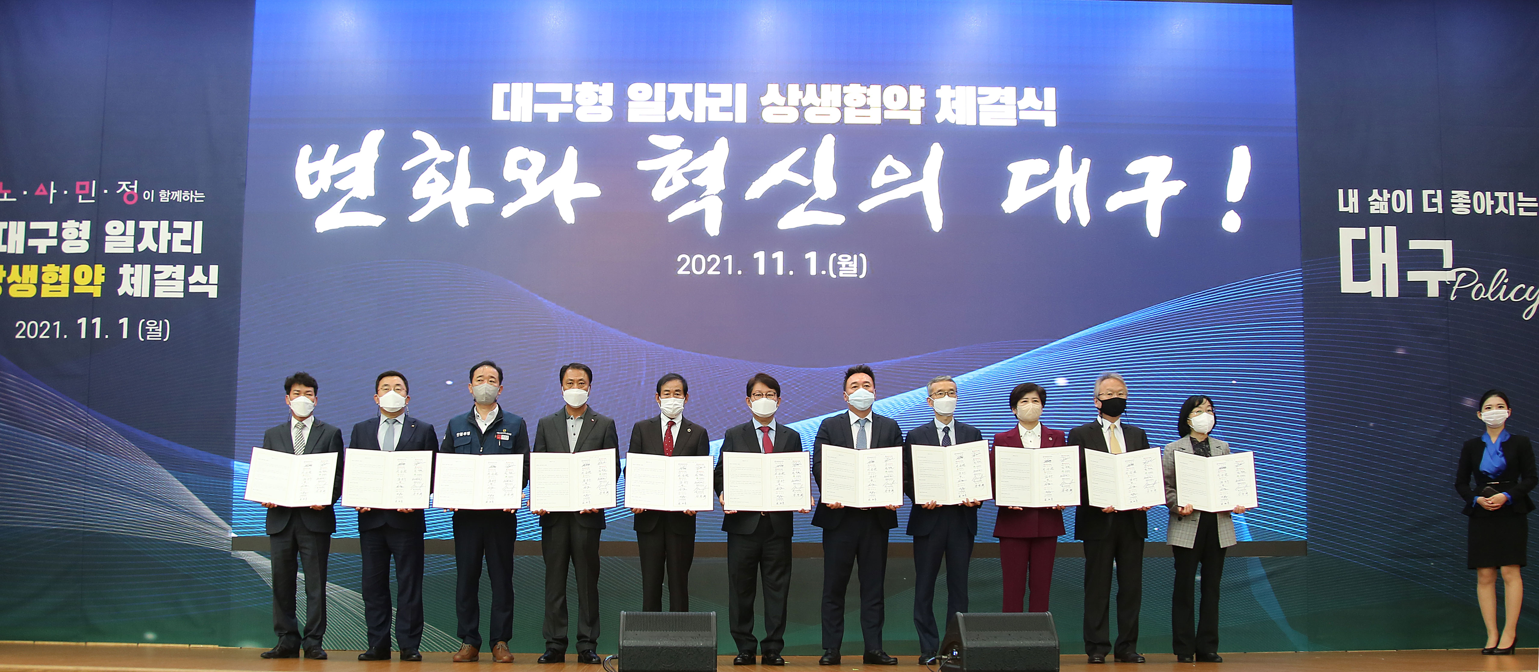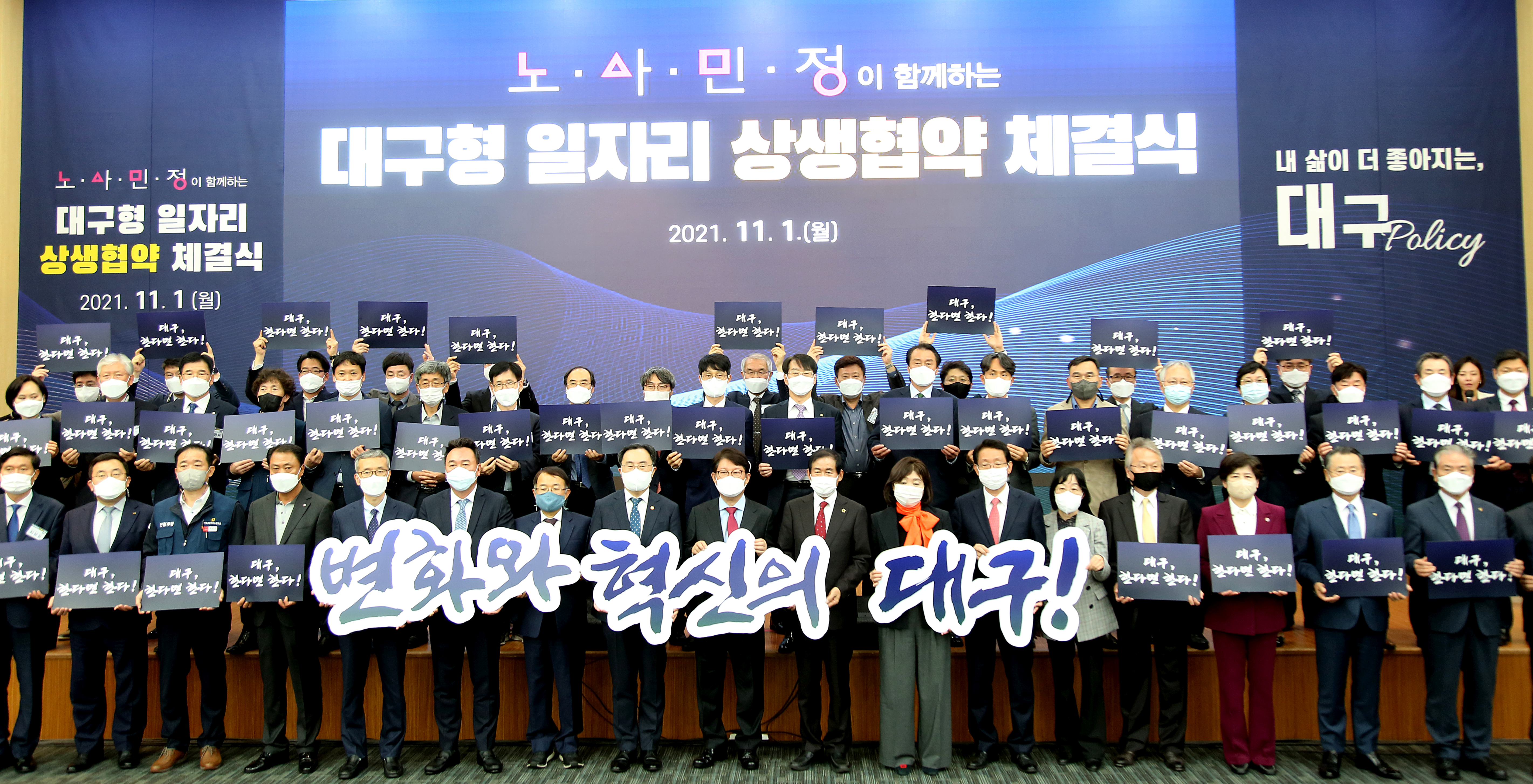 한편, 11월 1일(월) 오후 2시30분에 대구 엑스코(EXCO)에서 권영진 대구시장, 장상수 대구시의회 의장, 강은희 대구시교육감, 한국노총 대구지역본부 김위상 의장, ㈜대동모빌리티 김호인 노동자 대표 및 이승원 대표이사, ㈜대동 원유현 대표를 비롯하여 KT 송재호 부사장, 여준구 한국로봇융합연구원 원장, 양은경 한국과학기술연구원 부원장, 권대수 대구테크노파크 원장이 참석한 가운데 제2호 대구형 일자리 상생 협약식을 진행했다. 이날 행사는 대구형 일자리 소개영상 상영, 경과보고, 축사, 노사민정 인사말, 상생협약체결, 상생형 일자리의 성공적인 추진을 염원하는 퍼포먼스 순서로 진행됐다. 협약식에는 산업통상자원부장관, 대통령 직속 일자리위원회 부위원장 등 중앙부처 인사와 지역 국회의원, 경제단체장 등 50여명이 참석해 대구형 일자리의 새로운 출발을 축하했다.