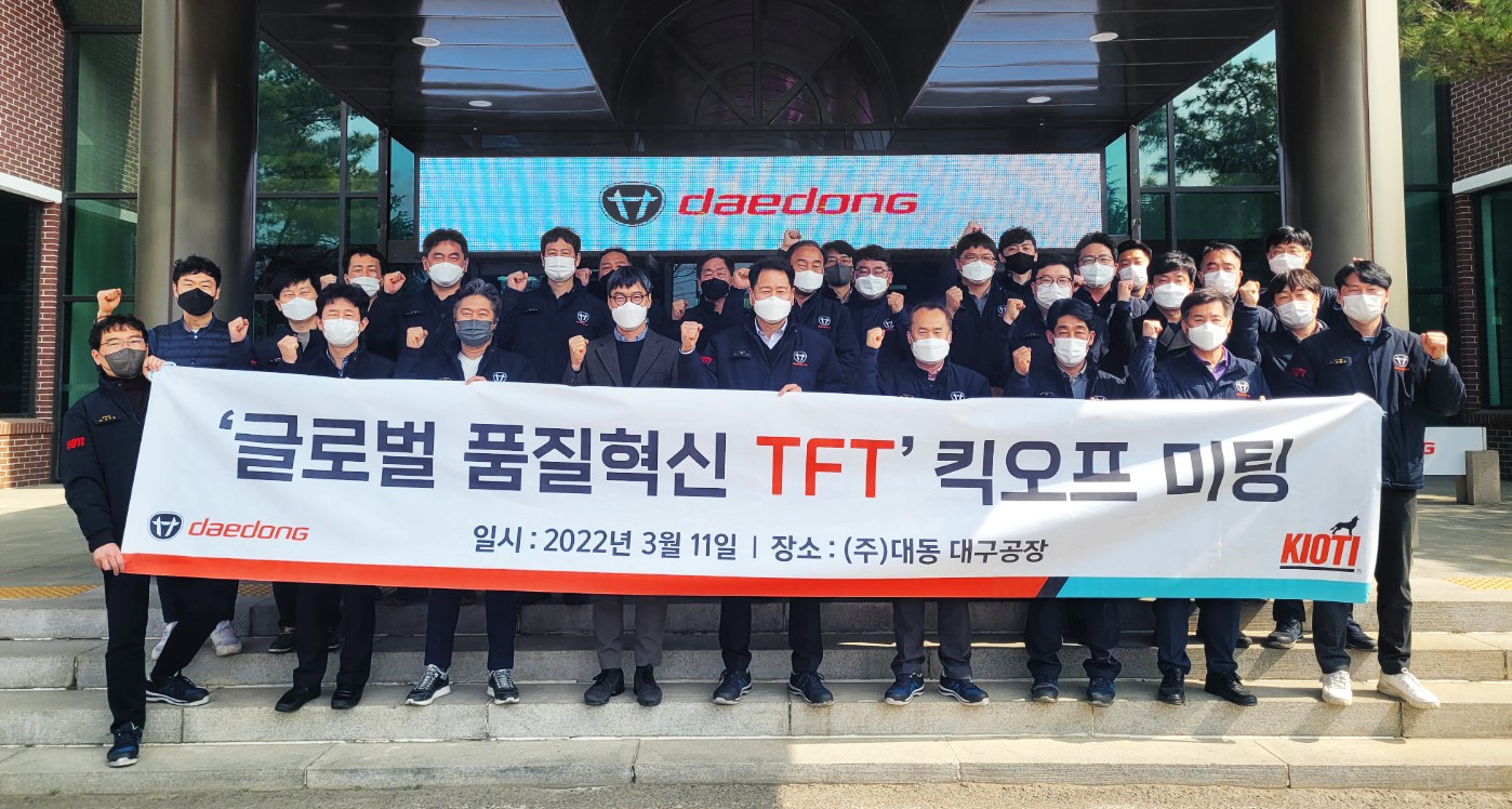 한편, 지난 11일 대동 대구공장(대구 달성군 논공읍)에서 노재억 공장장, 연세대학교 산업공학과 박희준 교수 (품질컨설팅), 이정수 품질보증본부장, 황태원 생산본부장 등을 비롯한 2기 TFT 멤버 30여명이 참석한 가운데 글로벌 품질 혁신 체계 구축 TFT 2기 킥오프 미팅을 진행했다. 이날 회의에서는TFT 1기 운영 성과 보고와 2기 TFT 운영 계획 및 과제별 중점 추진 사항에 대한 점검 등이 이루어졌다.