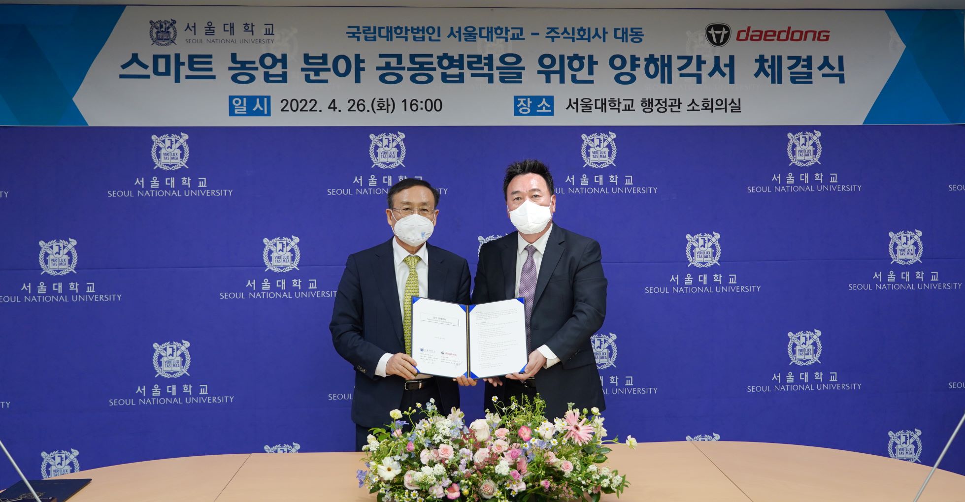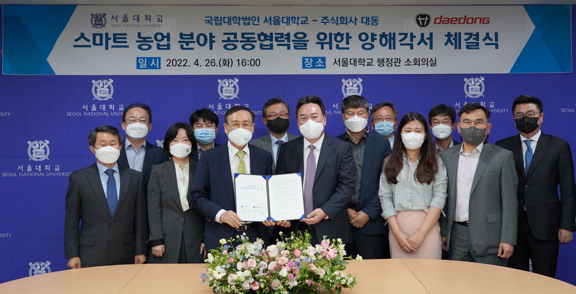 대동그룹의 모회사인 미래농업을 선도하는 국내 1위 농기계 기업 대동(공동대표 김준식, 원유현)은 서울대학교(총장 오세정)와 ‘스마트 농업 분야 연구 협력 및 사업화 추진’을 위한 업무 협약을 체결했다고 27일 밝혔다.