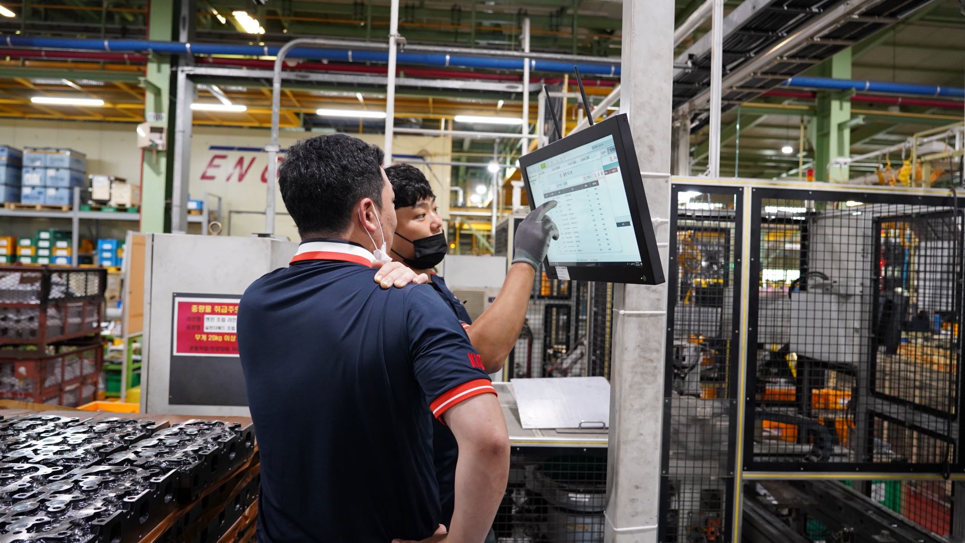 생산 과정에서는 RFID를 적용해 생산 및 품질 정보를 어디서든 실시간 확인이 가능하다. 여기에 생산 제품별로 실시간으로 기본 조립값(Ex.각종 오일류 투입량,토크 체결값)이 자동 세팅되고, 조립 매뉴얼(엔진작업 기준)이 작업자에게 자동 제공, 상이품 및 오조립을 방지해 조립 품질을 향상 시킨다. 또 조립품 검사 과정에서 발견한 조립 불량을 MES에 입력해 검사 및 정비 담당자에게 좀 더 상세하게 점검 사항을 전달, 철저한 출하 정비로 더 완벽한 제품을 고객에게 공급할 수 있다. 이 과정에서 발생한 빅데이터로 반복적으로 발생 되는 조립 불량에 대해서도 조립 방법이나 순서 변경 등의 선제적인 대응을 할 수 있어 시간 및 품질 로스를 한층 더 줄일 수 있다.