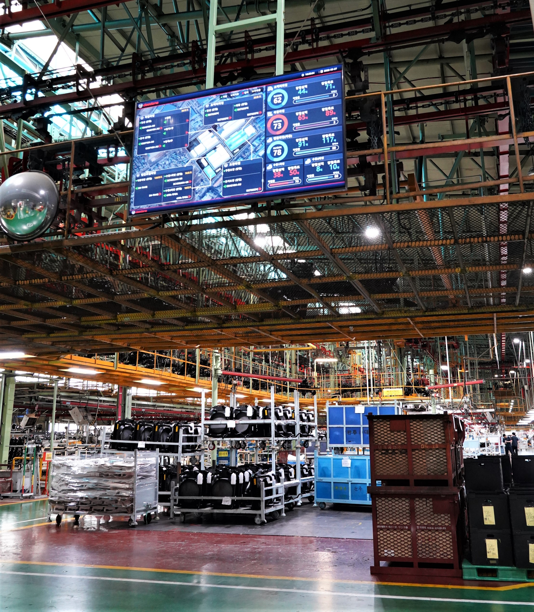 대동이 세계 수준의 생산 경쟁력 확보를 위해 올해 상반기 대구공장의 스마트 팩토리 전환을 추진했다. 사진은 대동 대동 MES(제조실행시스템)을 통해 디젤 엔진부터 완성형 농기계까지 모든 생산 제품의 실시간 생산 현황이 보여지고 있다.