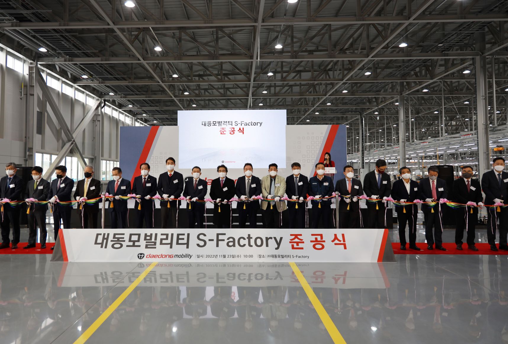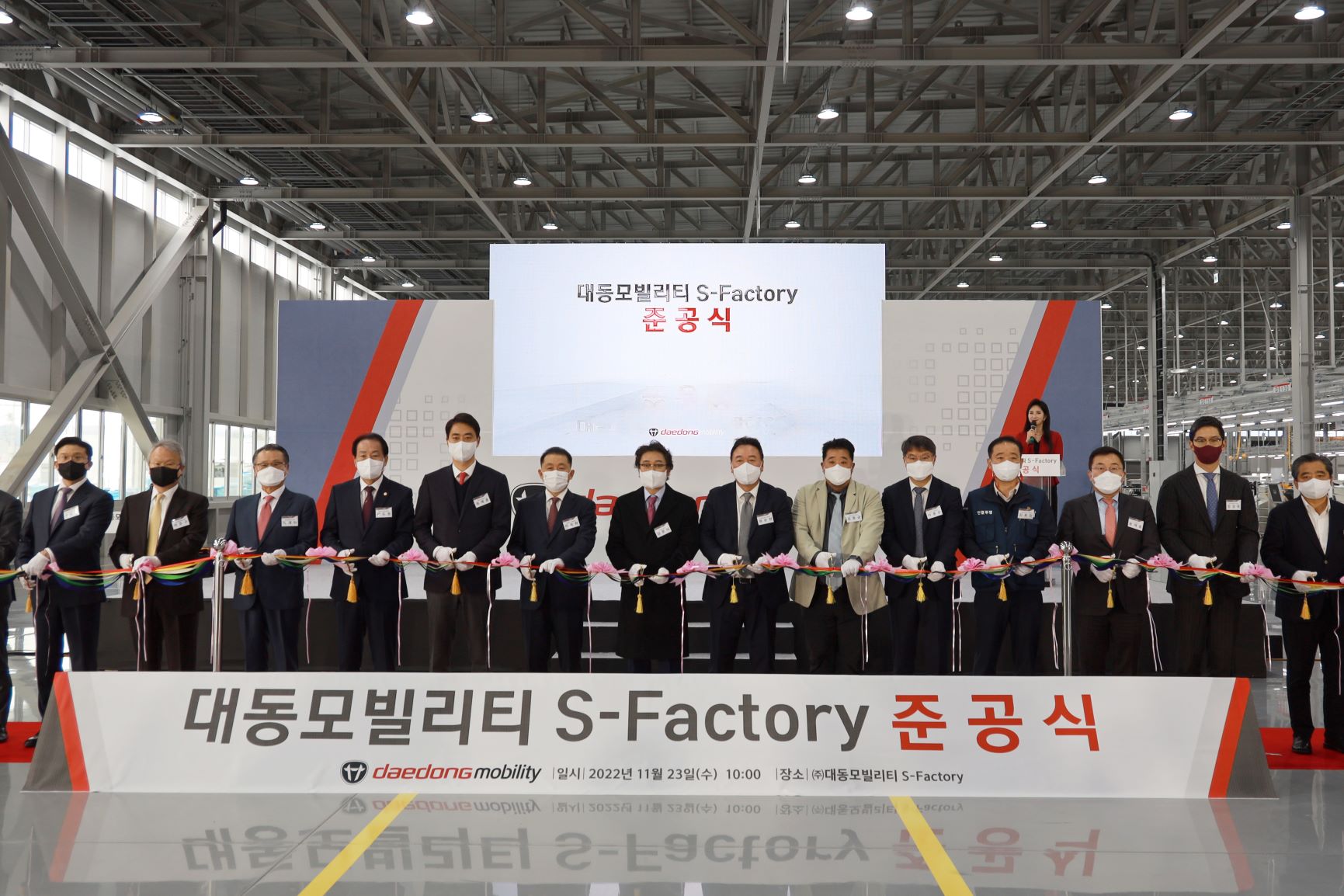 한편, 대동모빌리티는 11월 23일 S-팩토리에서 준공식을 진행했다. 이날 행사는 오전 10시에 시작해 경과보고, 환영사(김준식 회장), 기념사(원유현 대표이사), 감사패 전달, 공장 투어 및 생산 제품 시승 등의 일정으로 진행됐다. 행사에는 대동그룹 김준식 회장과 원유현 대동모빌리티 대표이사를 비롯한 그룹 임직원 60여명과 정부 기관 관계자, 투자자, 사업 및 기술 협력 파트너사 등 외부 인사 80여명 등 총 140여명이 참석했다. 외부 인사로 이종화 대구시 경제부시장, 최재훈 달성군수, 이재하 대구상공회의 회장, 여준구KIRO(키로)원장, 송재호 KT 부사장, 이창민 카카오모빌리티 부사장, 이영환 GS글로벌 대표이사, 정도현 도미누스 인베스트먼트 대표이사, 손창배 키스톤PE 대표이사, 최영수 하나증권 상무 등이 참석해 자리를 빛내 주었다.