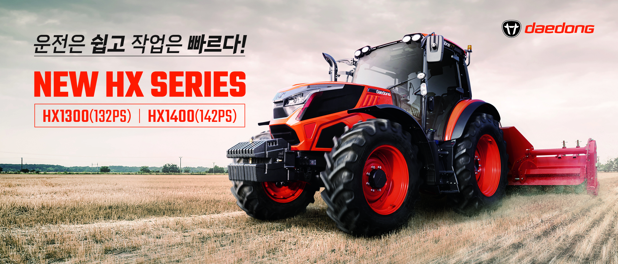 대동그룹의 모회사인 미래농업 리딩기업 대동(공동대표 김준식, 원유현)은 플래그쉽 대형 트랙터 HX 시리즈 ‘HX1300(132마력)’, ‘HX1400(142마력)’ 의 페이스 리프트(부분 변경) 모델인 NEW HX 시리즈를 출시한다고 4일 밝혔다.