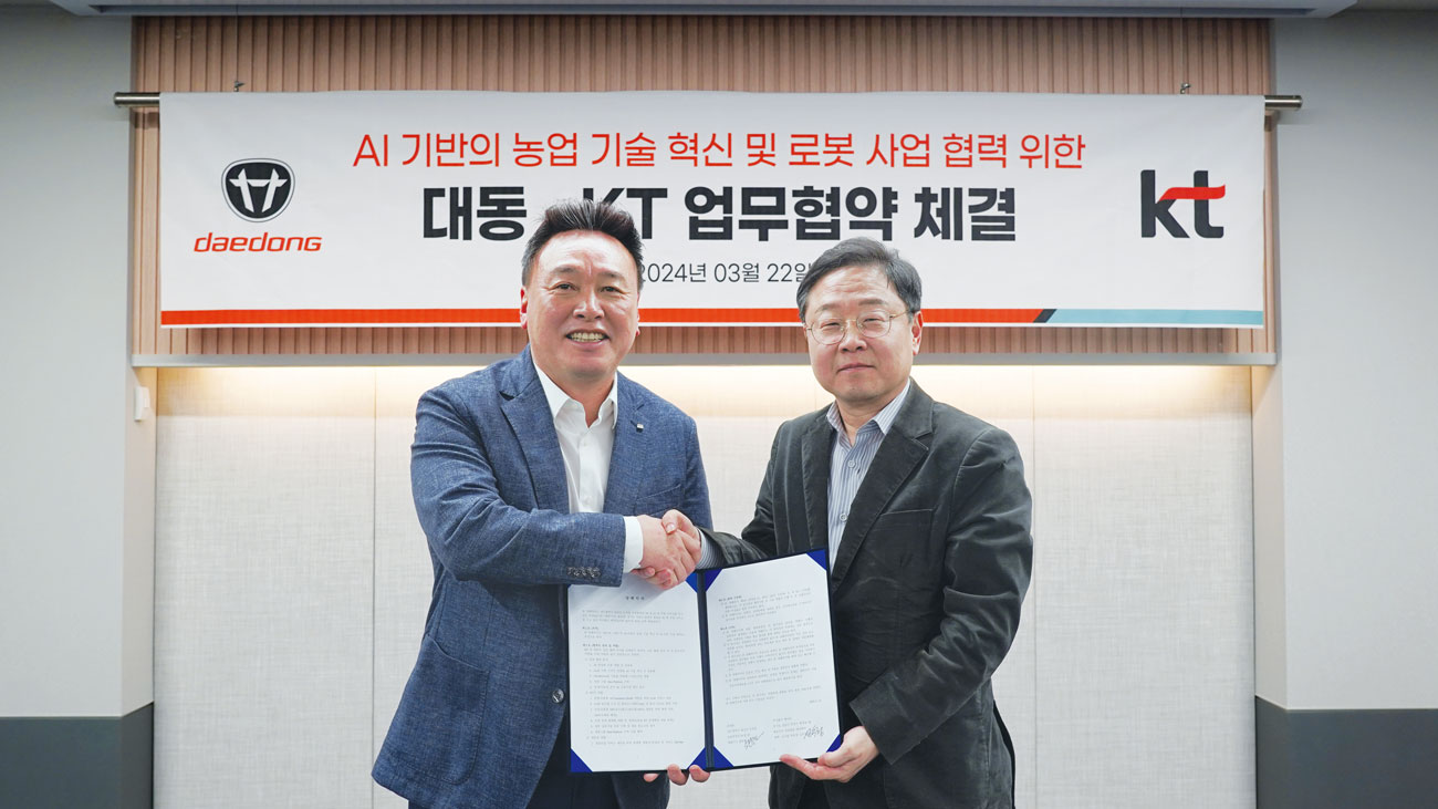 대동그룹의 미래농업 플랫폼 기업 대동(공동대표 김준식, 원유현)은 KT(대표이사 김영섭)와 22일 'AI기반의 농업기술 혁신 및 AI로봇 사업 협력'을 위한 업무 협약을 체결했다.