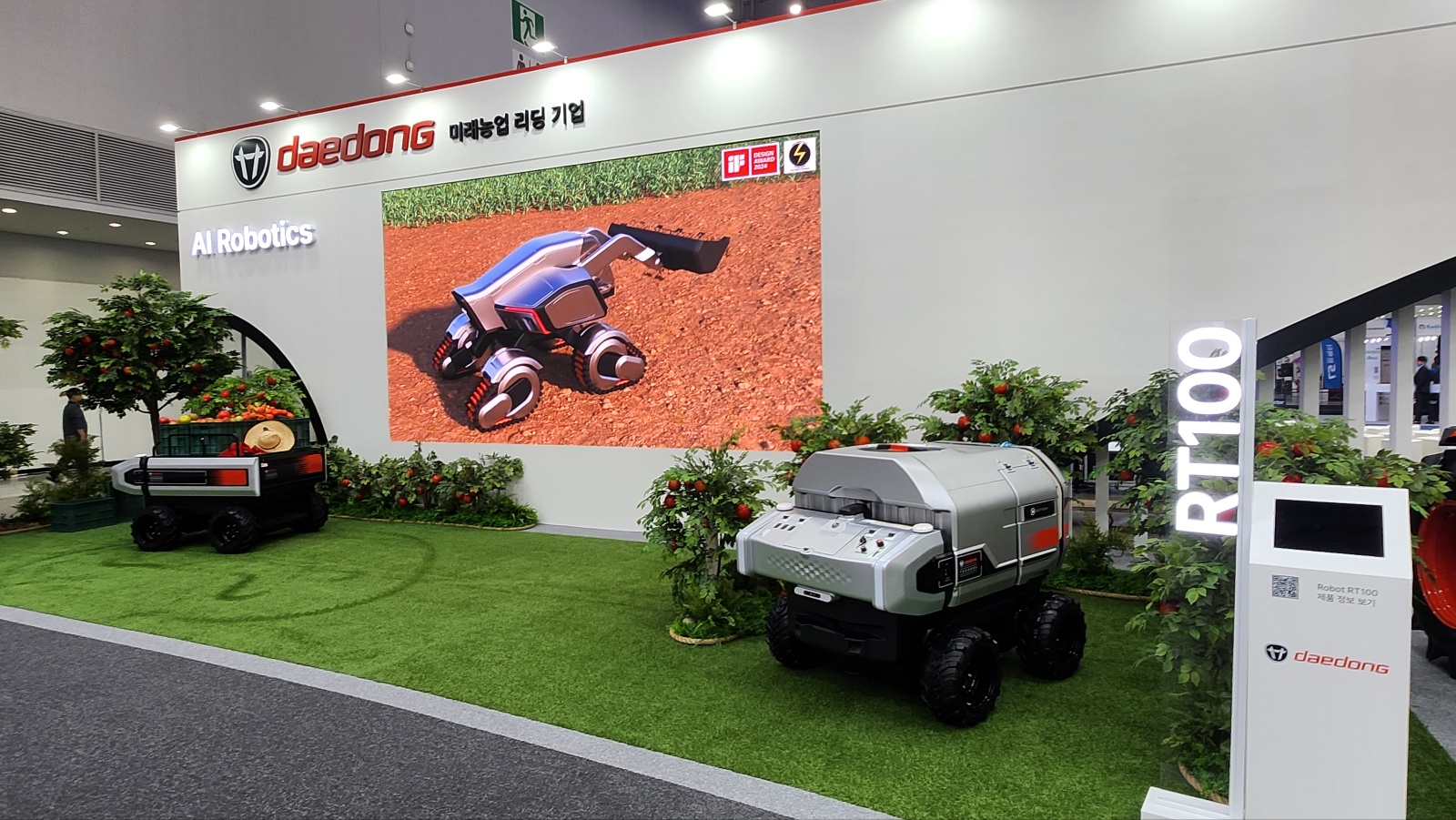 AI 로보틱스 Zone에서는 국내 과수 농작업의 미래를 보여주는 로봇 기술을 탑재한 농업용 로봇 2종(운반, 방제)을 공개한다. 운반로봇은 작업자의 조작 최소화에 초점을 맞춰 (1)자율주행 운반로봇 (2)유선(와이어) 추종운반로봇으로 개발됐으며, 전동 기반이라 소음과 매연으로 인한 불편함이 없는 것이 장점이다. 리프트와 덤프 기능으로 화물 운반도 쉽고 최대 300kg까지 적재가 가능한다. 대동은 이 운반로봇의 고객 실증 및 제품 평가를 위해 국내 과수농업인 대상 체험단을 지난달부터 운영하고 있다. 10명 모집에 약 100명이 지원해 농업 로봇에 대한 히트 가능성을 일차적으로 확인했고, 다양한 고객 평가를 듣기 위해 2차 체험단도 준비 중이다.