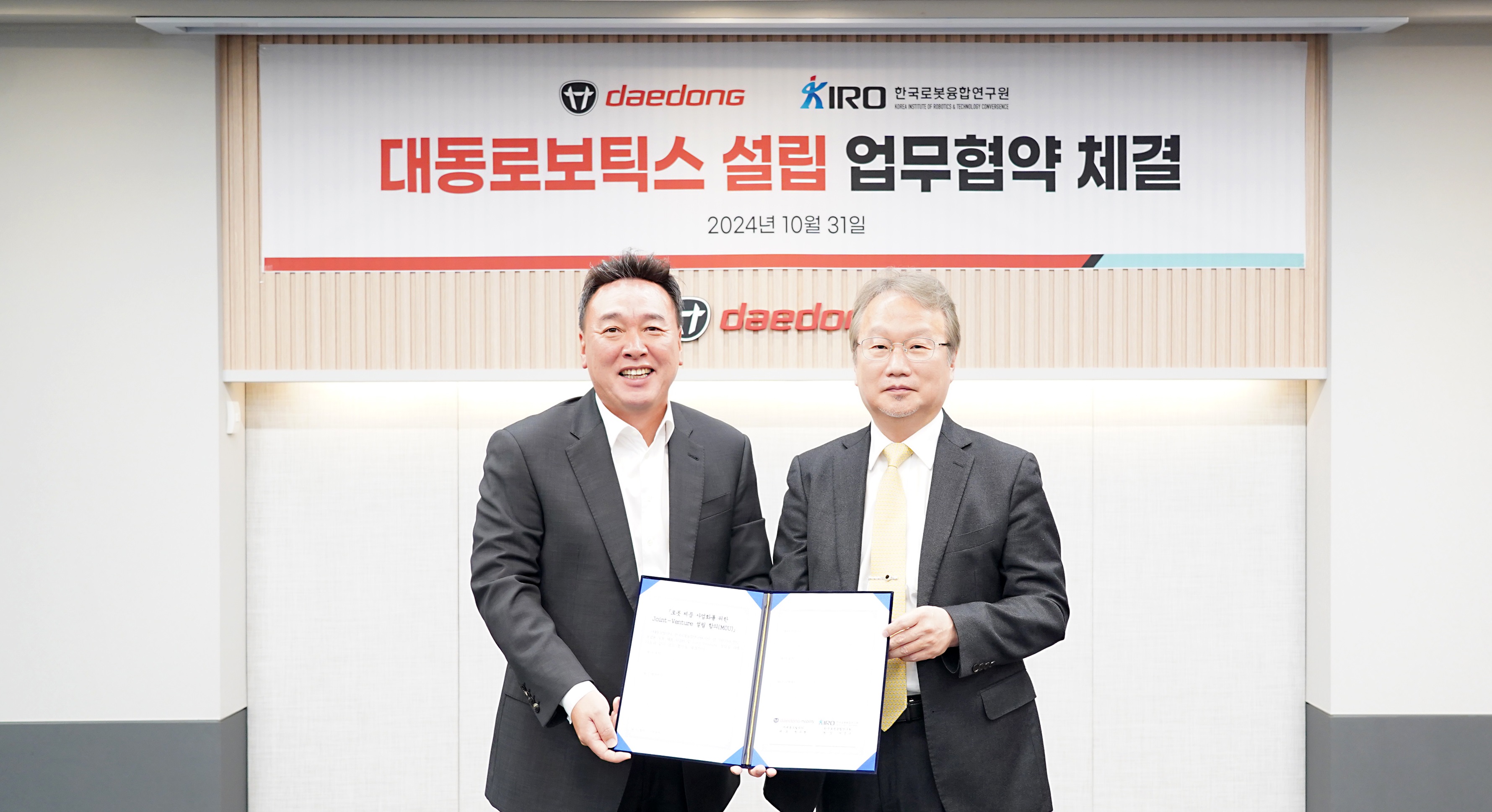 대동그룹의 스마트모빌리티 기업 대동모빌리티(대표이사 원유현)가 국내 최고의 로봇전문연구기관인 ‘한국로봇융합연구원(원장 여준구, 이하 KIRO)[i]’와 손잡고 조인트 벤처(JV)로 지능형 자율 로봇(Intelligent Autonomous Robots) 회사인 대동로보틱스(Daedong Robotics)를 설립해 계열사로 추가하고, 그룹의 글로벌 지능형 로봇 전문 기업으로 육성한다고 4일 밝혔다.
