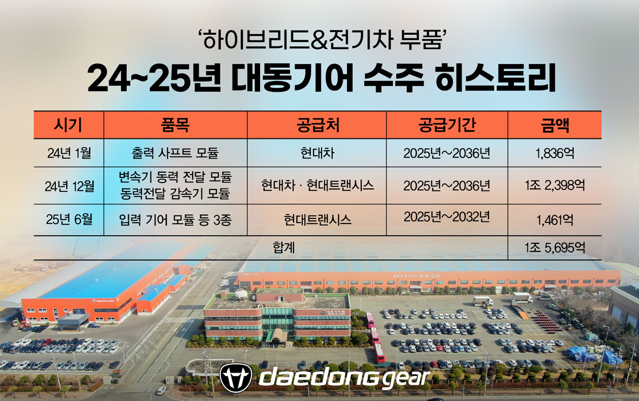 서종환 대동기어 대표는 "이번 수주는 대동기어가 다년간 축적해온 파워트레인 기술력과 품질 역량이 고객사로부터 인정과 신뢰를 받은 결과"라며 "전동화 시대를 선도하는 핵심 부품 공급사로서 책임감을 갖고 고객사의 요구를 뛰어넘는 제품과 솔루션 제공을 위해 지속적으로 노력할 것"이라고 말했다.