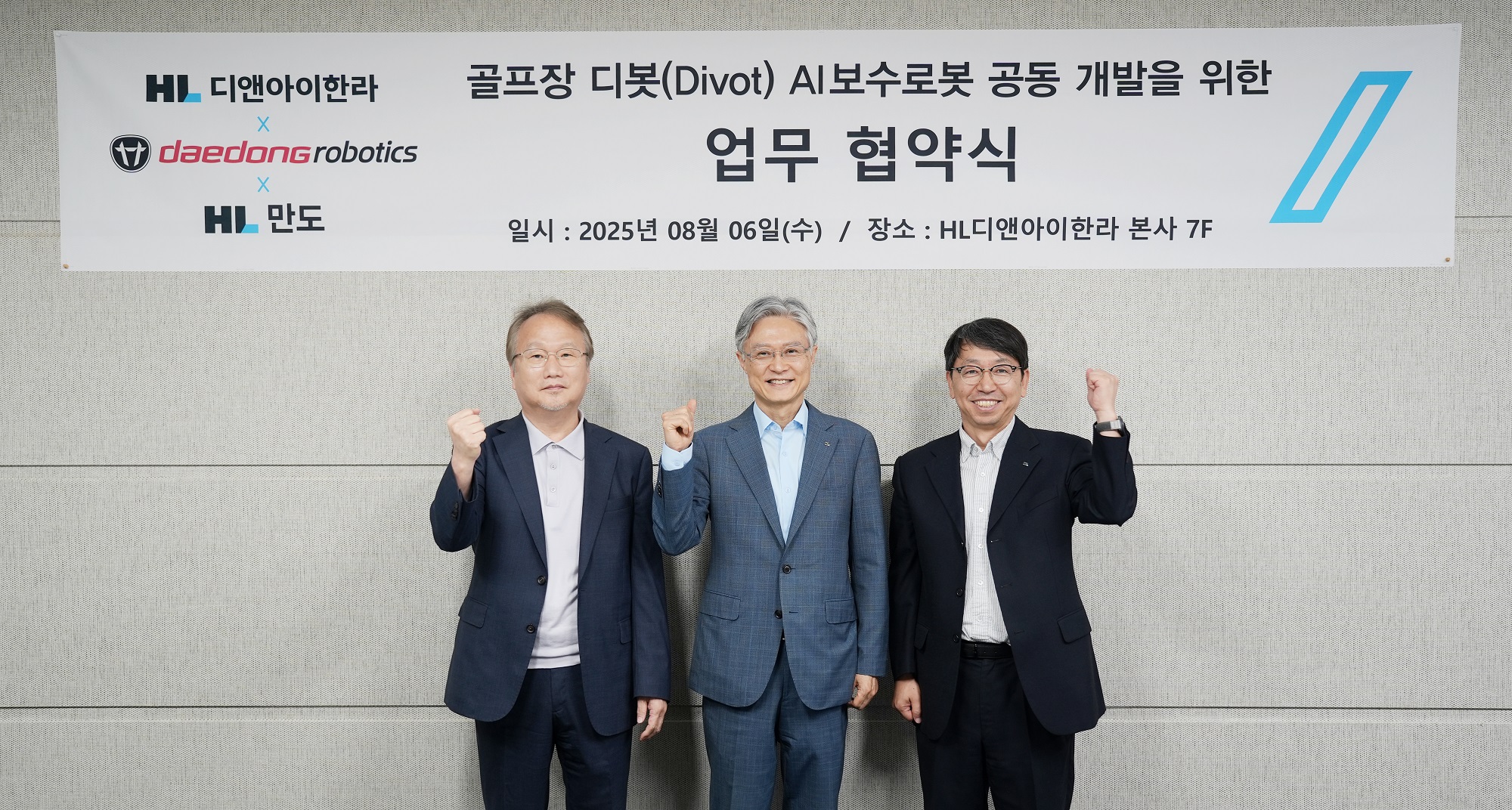 대동그룹의 AI 로봇 전문기업 대동로보틱스(대표 원유현, 여준구)가 HL디앤아이한라, HL만도와 함께 골프장 내 디봇(Divot)을 보수하는 AI 기반 로봇을 공동 개발하기로 하고, 기술 협력 양해각서(MOU)를 체결했다고 7일 밝혔다.