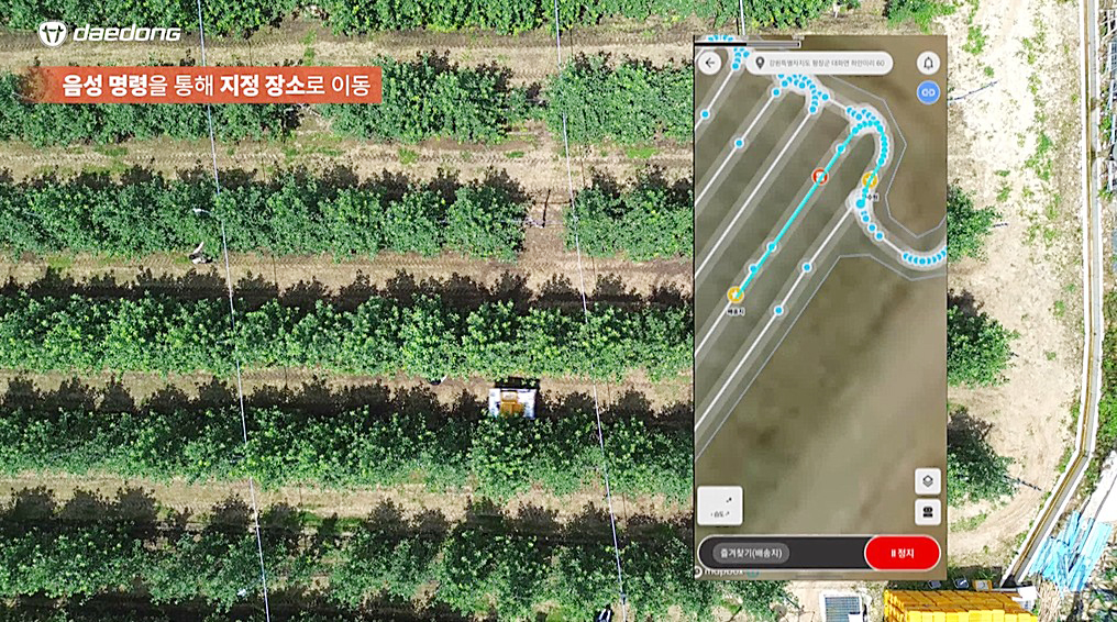 이 모델은 대동로보틱스가 지난달 출시한 자율주행 운반로봇에서 한층 더 고도화된 모델로, 내년 출시를 목표로 지난달부터 사과 농장 등에서 필드 테스트를 시작했다. 음성인식과 대형언어모델(Large Language Model, 이하 LLM) 기술을 결합해 사용자의 자연어 속 맥락과 의도를 파악하고, 스스로 작업을 수행한다. 이를 통해 작업자는 쉽고 편하게 음성으로 지정 목적지까지 자율주행과 특정 작업자 추종 등 핵심 기능을 지시할 수 있다.