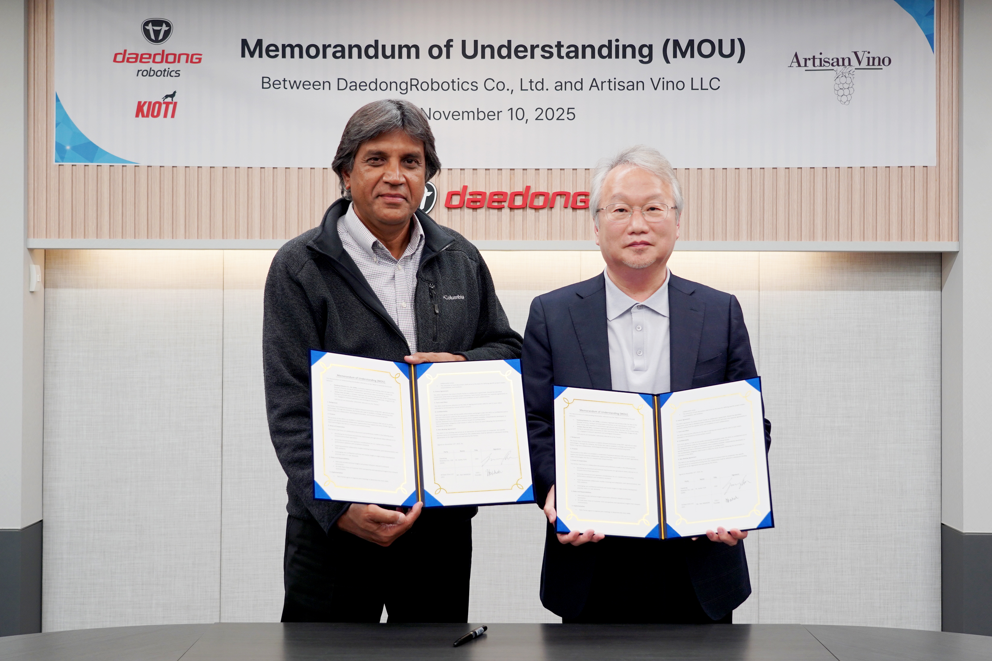 대동그룹의 AI 로봇 전문기업 대동로보틱스(대표이사 여준구)는 미국 와인 유통 기업 아티산 비노(Artisan Vino LLC), 글로벌 베리 생산·유통 기업인 호티프룻의 스페인 법인(Hortifrut España Southern Sun S.L.U., 이하 호티프룻)과 각각 지난 10일, 11일 농업 로봇 기술 고도화와 현지 시장 진입 협력을 위한 업무협약(MOU)을 체결했다고 13일 밝혔다.
