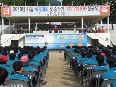 10월 2일 대구 달성군민운동장에서 대동공업 비전선포식과 체육대회가 있었습니다.