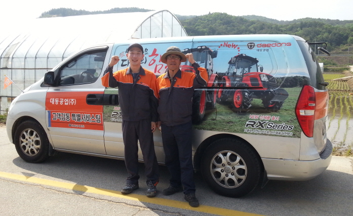 대동공업은 농번기인 이앙철(5월)과 수확철(10월)에 자사의 개발, 품질, 서비스 전문가로 구성된 ‘고객감동 특별 서비스팀’ 3개팀을 구성해 8개의 지역 본부와 150개 대리점의 서비스 팀과 함께 농민들에게 좀 더 신속하고 수준 높은 서비스를 제공한다. 관련해 ‘고객 감동1팀2팀’은 서비스 요청 현장에서 제품 정비 및 수리를 담당하며 ‘고객 감동3팀’은 부품 긴급 조달 및 콜센터 운영을 맡는다.