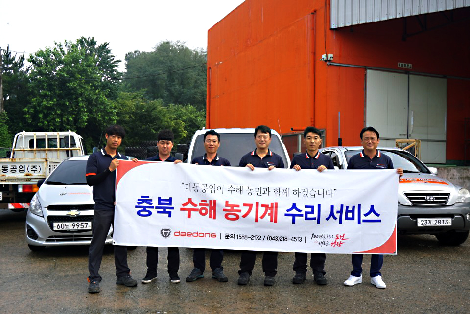 대동공업은 7월 24일부터 7월 30일까지 충북 청원군 오창읍에 위치한 대동공업 충북지역본부에 특별 서비스 캠프를 마련하고 충북 관내 수해 지역 농가를 순회하며 수해로 인해 고장 난 농기계에 대해 긴급 무상 수리 서비스를 시행한다. 대상 농기계는 대동공업이 생산 판매한 트랙터, 콤바인, 이앙기, 운반차 등이다.