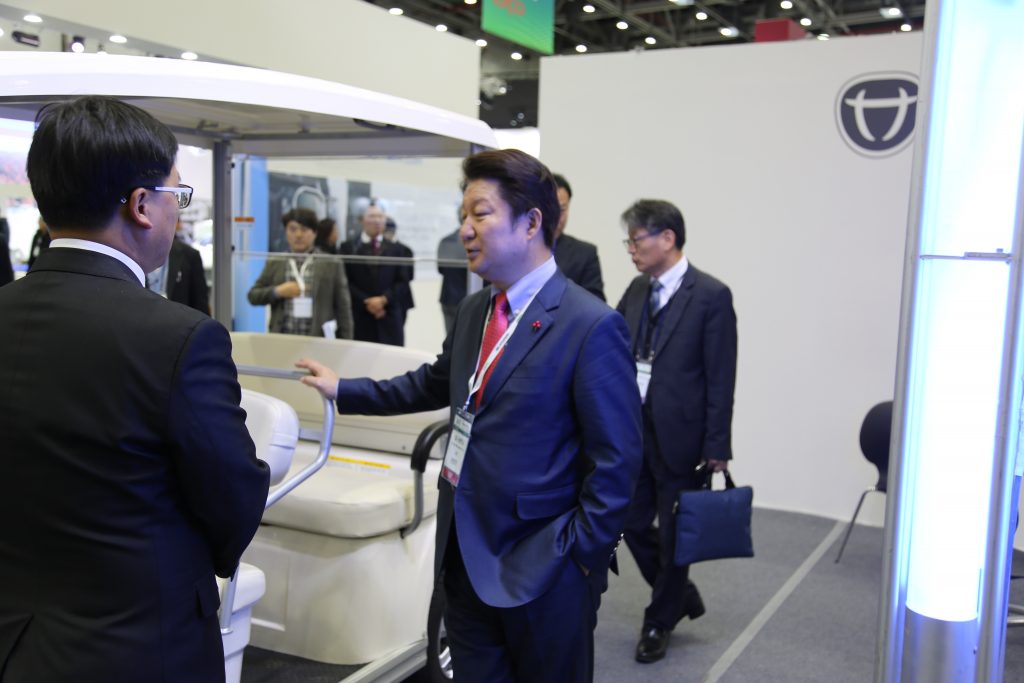 대동공업 전기 운반차를 둘러보는 하창욱 대표