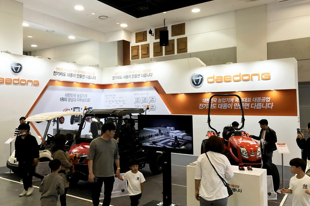 국내 1위 농기계 기업 대동공업(공동대표이사 김준식, 하창욱)은 지난 5월 2일부터 6일까지 제주국제컨벤션 센터에서 열린 ‘제 5회 제주 국제 전기자동차 엑스포’에 참가했다고 9일 밝혔다.