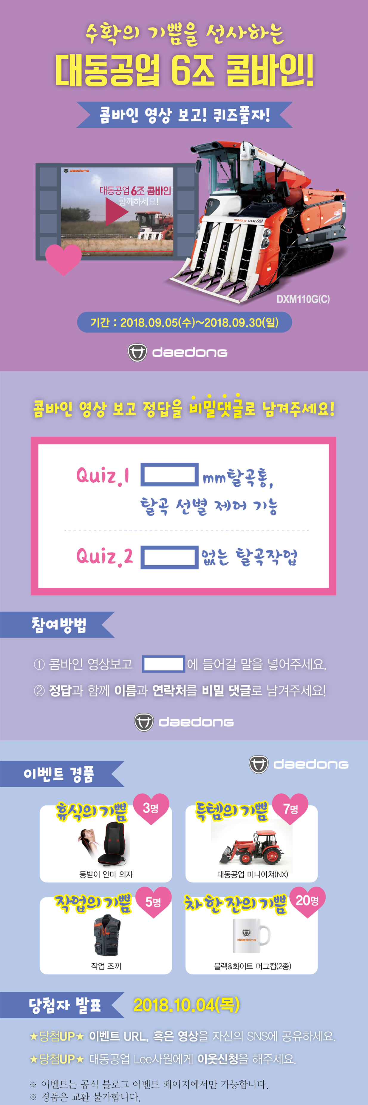 대동공업, 수확철 콤바인 광고 퀴즈 이벤트 개최