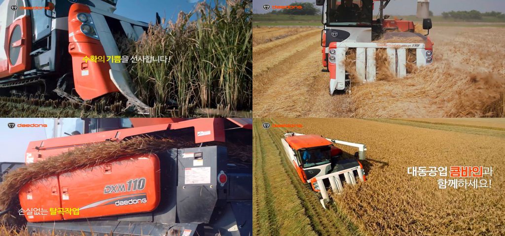 - ‘대동공업 수확 99.9% 콤바인=수확의 기쁨을 주는 콤바인’ 이라는 메시지 전달