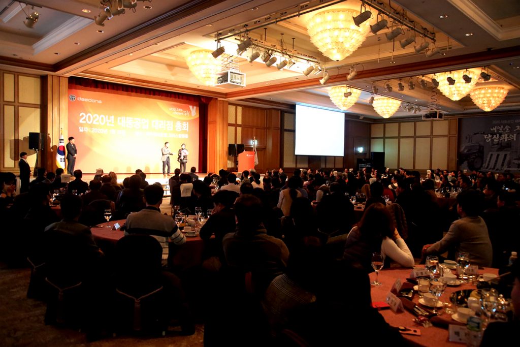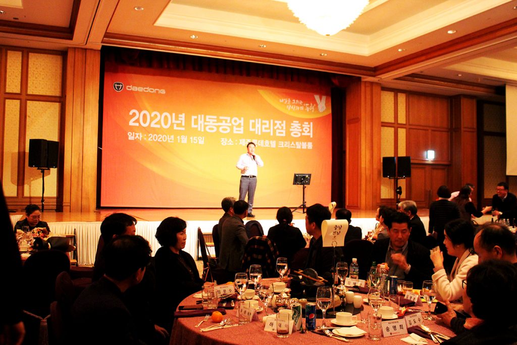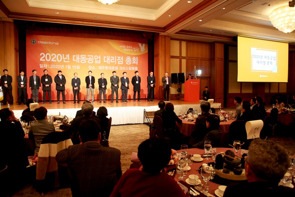 - 1월 15~16일 제주롯데호텔에서 대동 임직원과150개 대리점주 총 250명 참석해 진행 - 판매 및 서비스 우수 대리점 시상, 19년 사업 실적, 20년 사업 및 제품 출시 계획 발표 - 판매 최우수 전남 무안, 서비스 최우수 경기 양평, 최우수 지역본부 경기 본부 등 수상