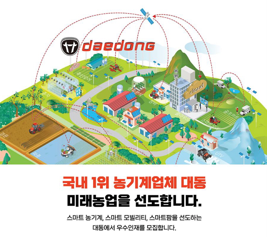 미래농업을 리딩하는 국내1위 농기계 기업 대동(대표이사 김준식, 원유현)은 미래농업 사업을 본격 추진하며 21년 하반기 신입/경력 사원 채용을 추진한다고 6일 밝혔다.