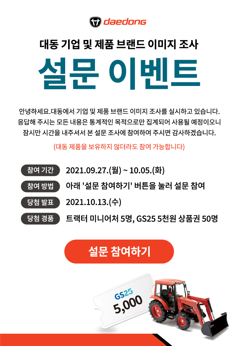 대동 기업 및 제품 브랜드 이미지 조사 설문 이벤트