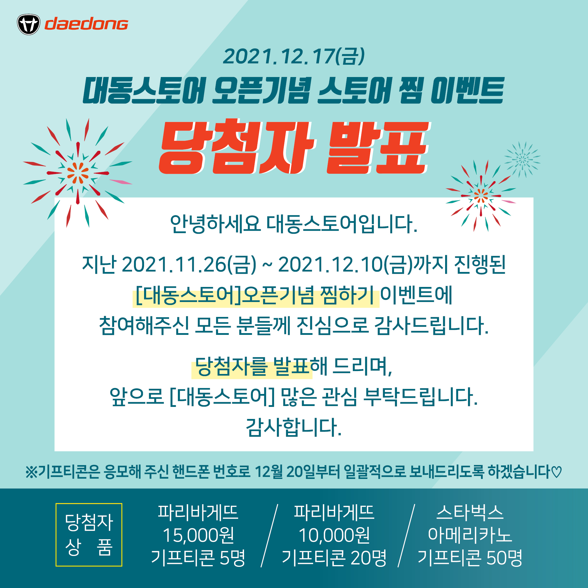 [이벤트 당첨자 발표] 대동스토어 오픈기념 '스토어 찜하기' 이벤트 당첨자