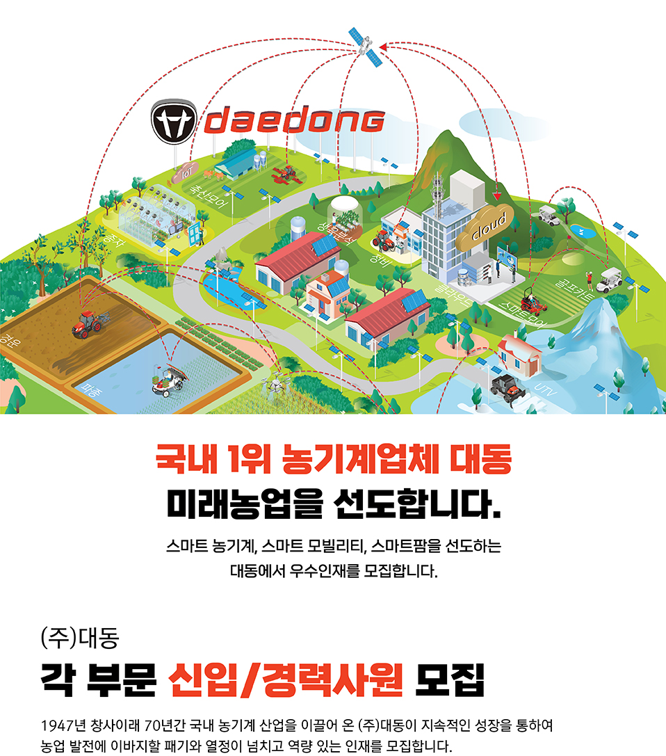 미래농업을 선도하는 국내 1위 농기계업체 대동에서 인재를 모집합니다!