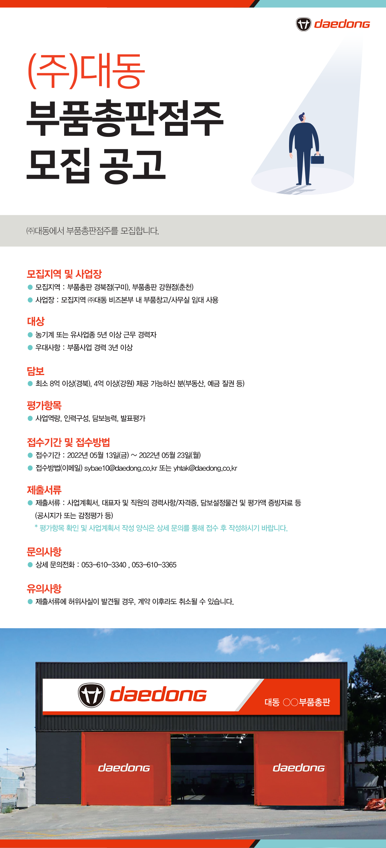 모집지역 : 부품총판 경북점(구미), 부품총판 강원점(춘천)
