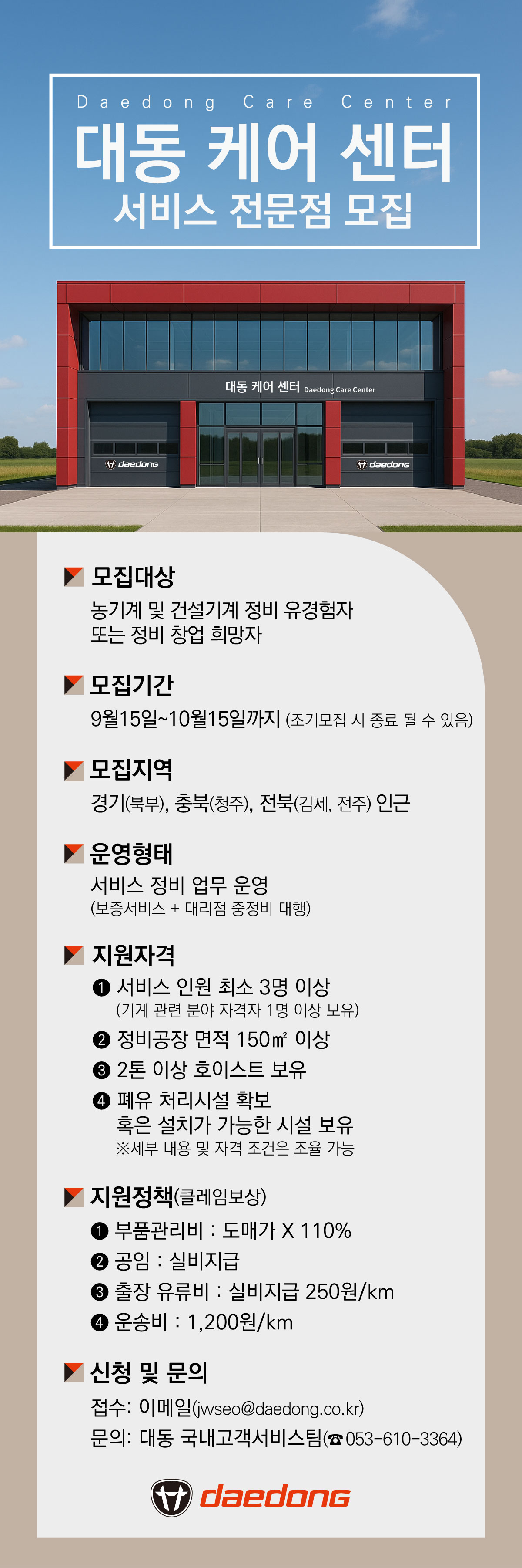 서비스 전문점 '대동 케어 센터(Daedong Care Center)' 모집