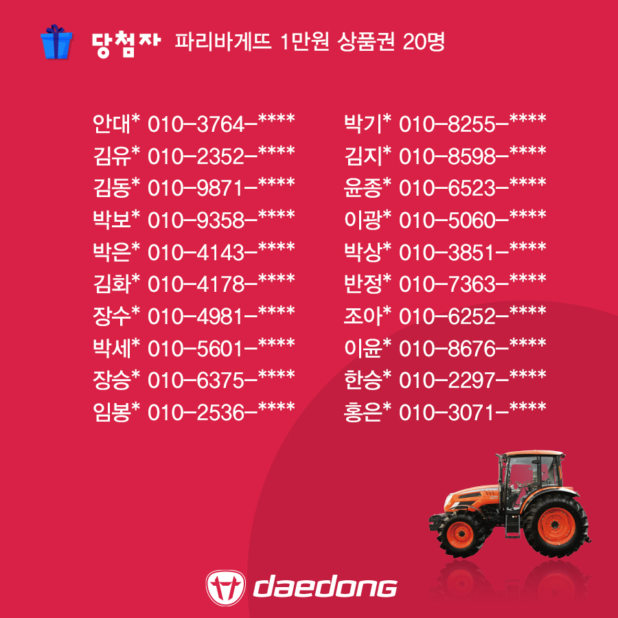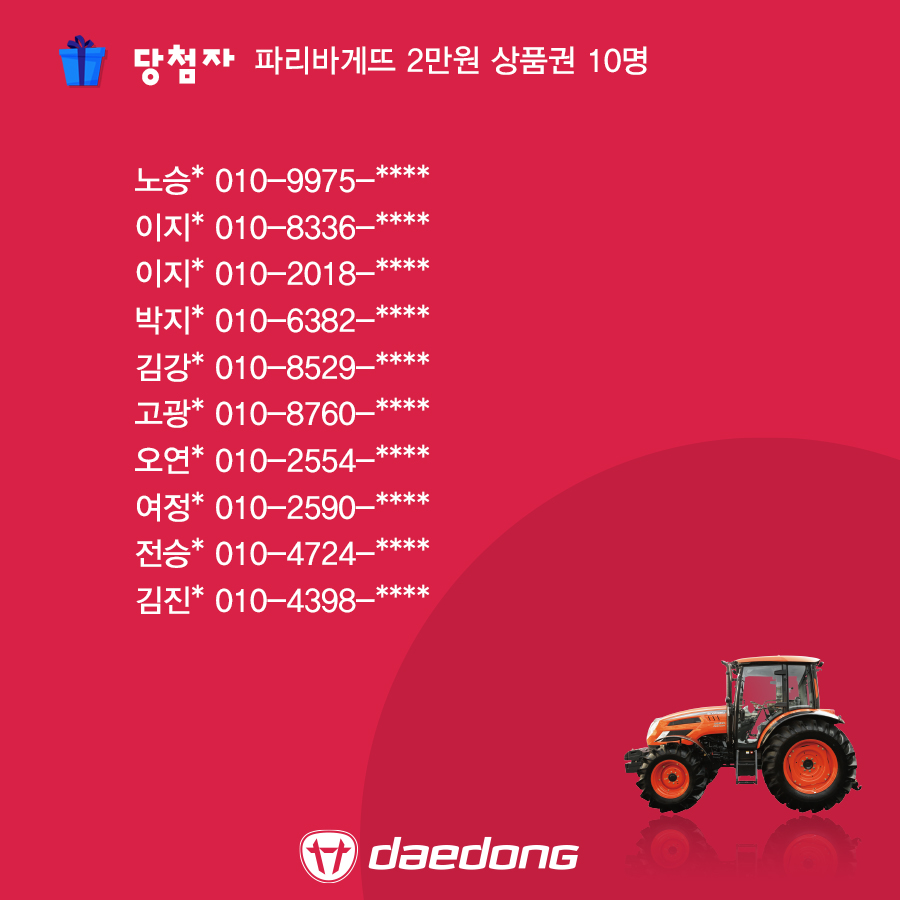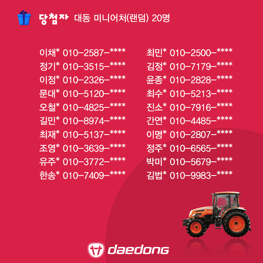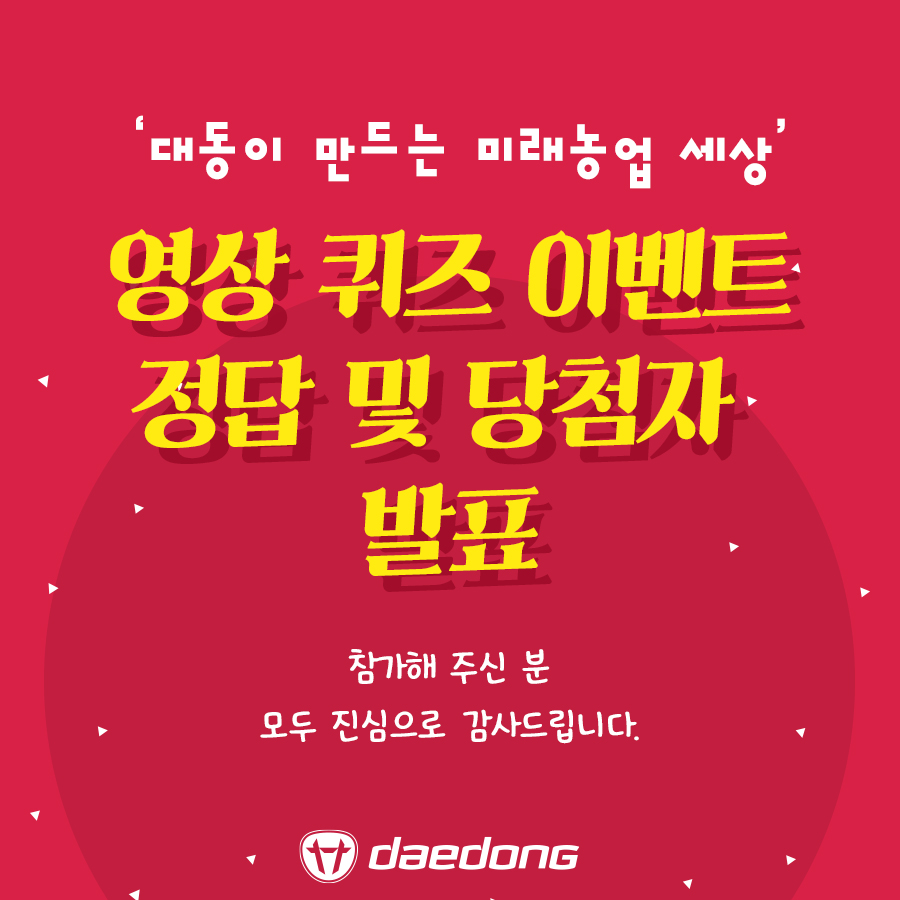 [이벤트 당첨자 발표] '대동이 만드는 미래농업 세상' 영상 퀴즈 이벤트 당첨자