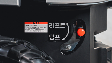 덤프의 최대 각도는 40도이며, 리프트는 52cm까지 올라갑니다.