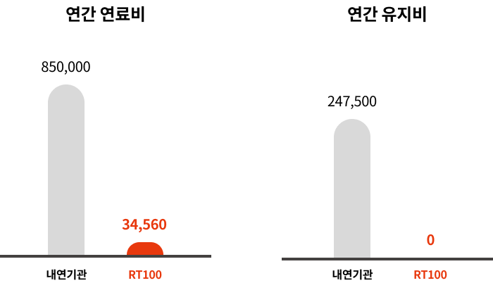 * 일평균 4시간, 연 100일간 사용 기준 내연기관 운반차 8마력 엔진과 비교한 내용입니다.