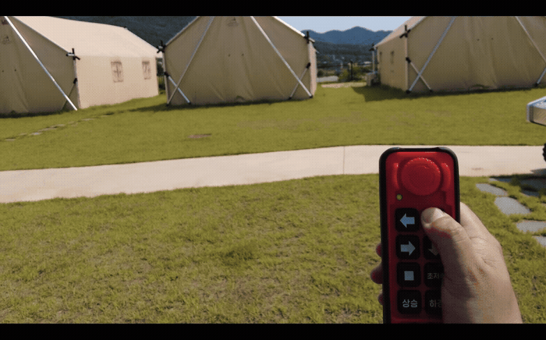 먼 거리에서도(최대 반경 80m) 리모컨으로 편리하게 전진, 후진, 방향 조종, 회전, 저속 주행, 리프트/덤프 승하강까지 편하게 조종이 가능합니다