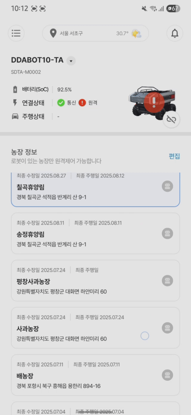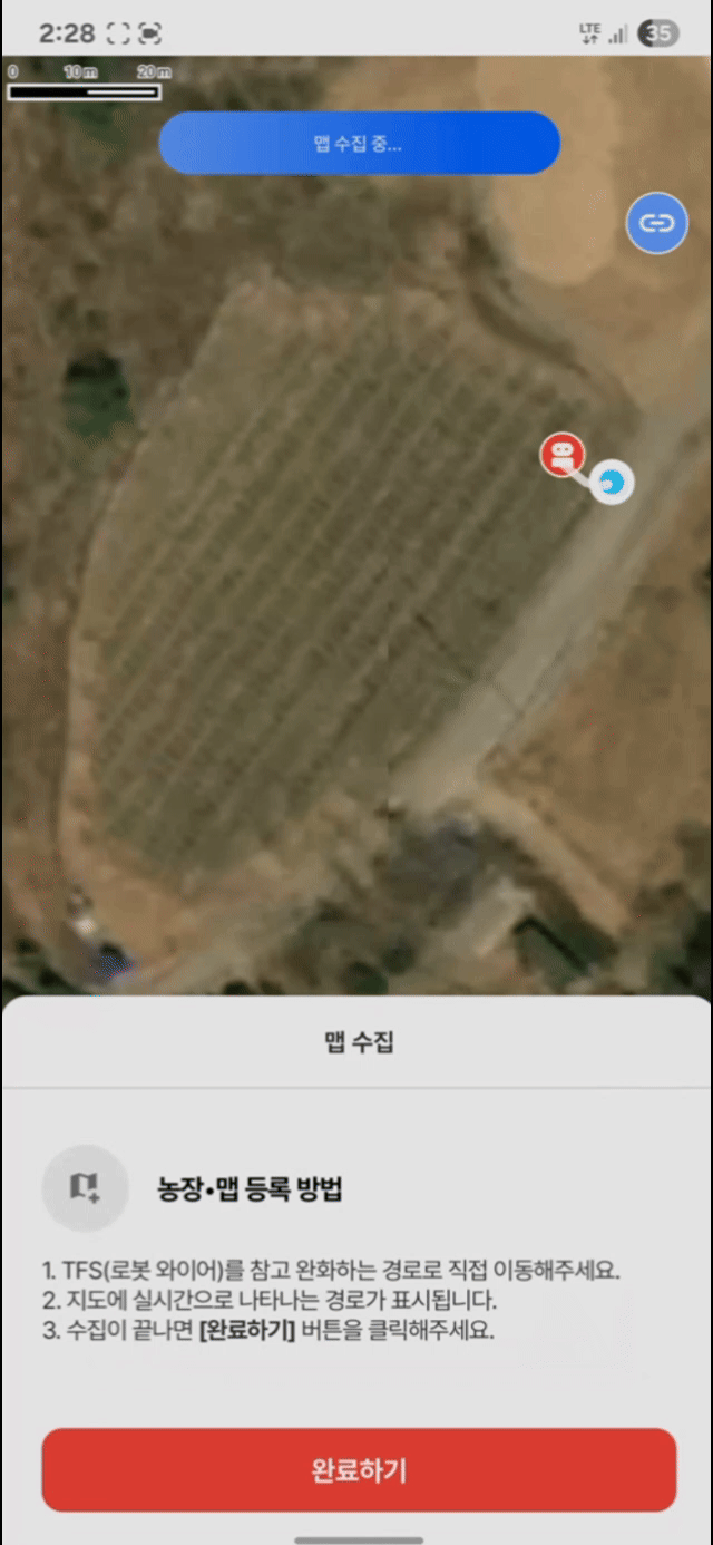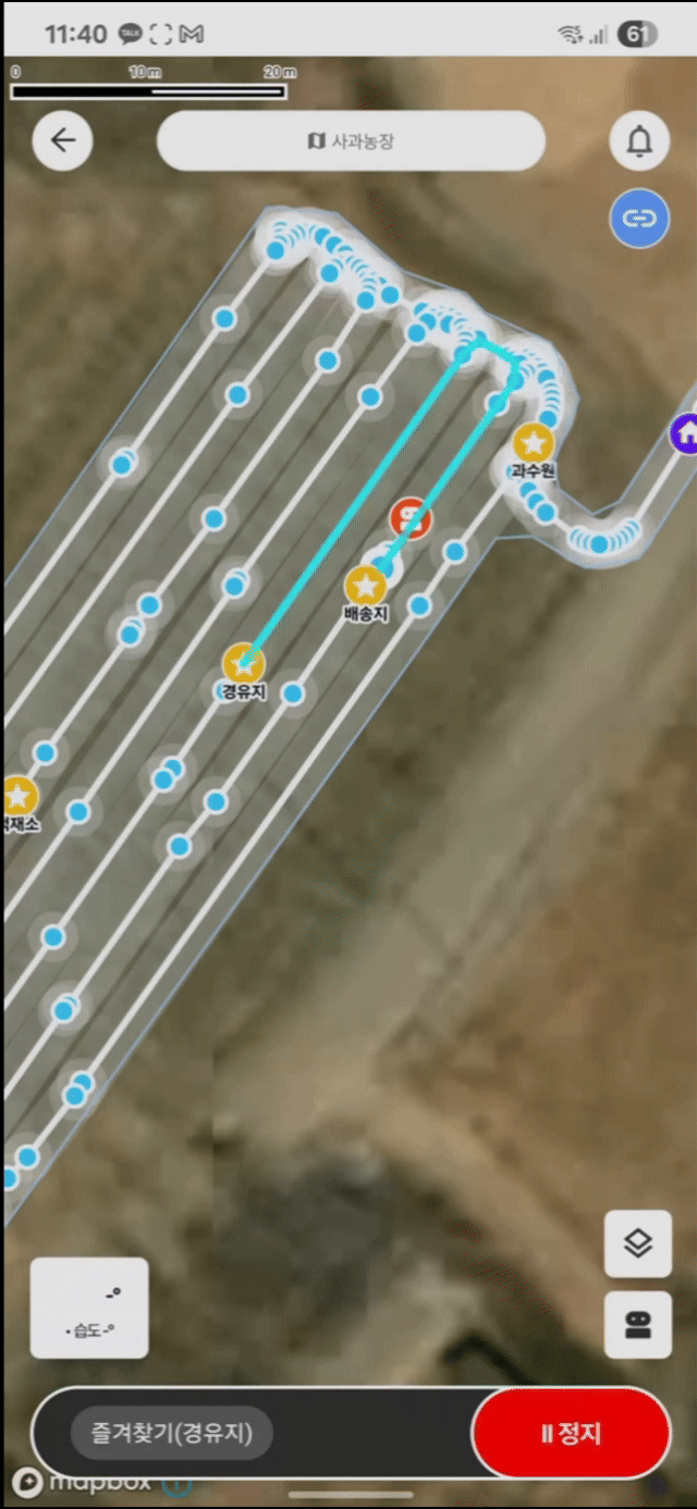 직접 조종하지 않아도 과수원 내 경로 맵핑을 통해 최대 11개 지점 중 원하는 곳으로 알아서 이동합니다.
