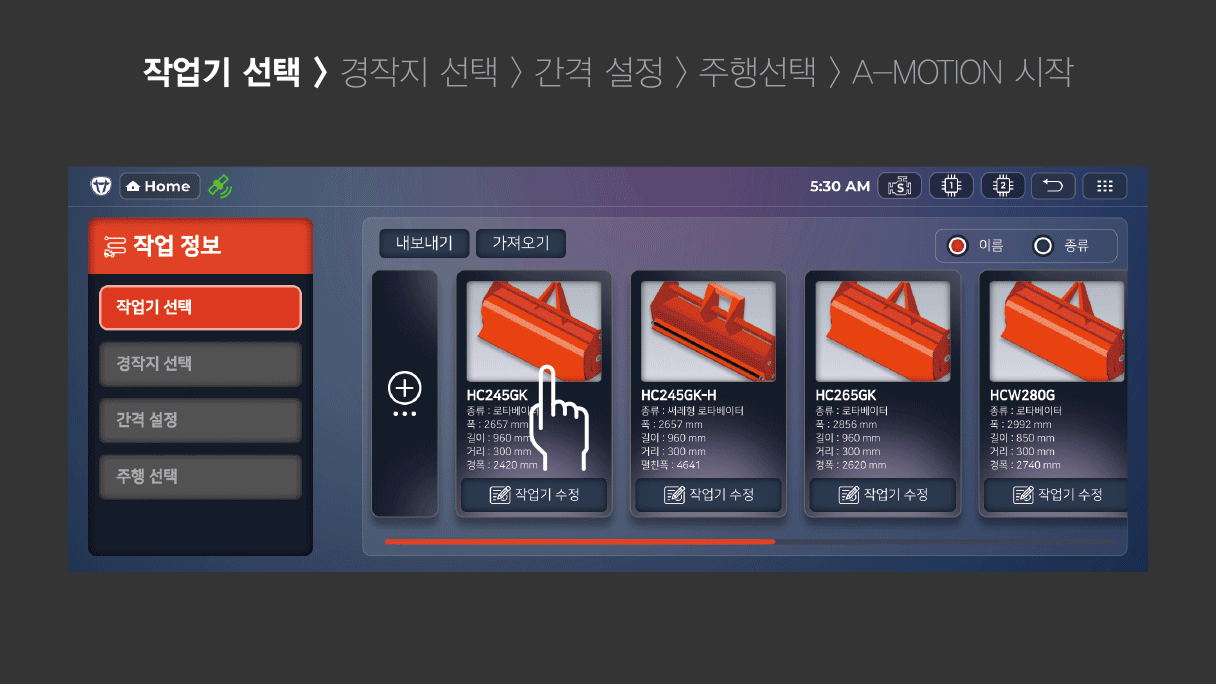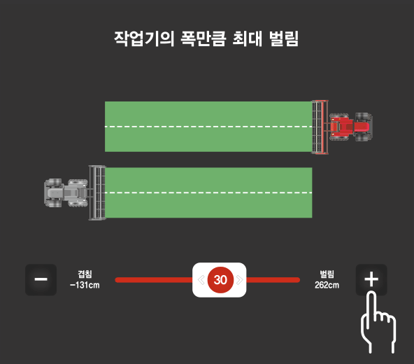 경작지를 벗어나지 않는 작업으로 위험한 상황이 벌어지지 않도록 안전하게 주행이 가능한 대동만의 기술입니다.